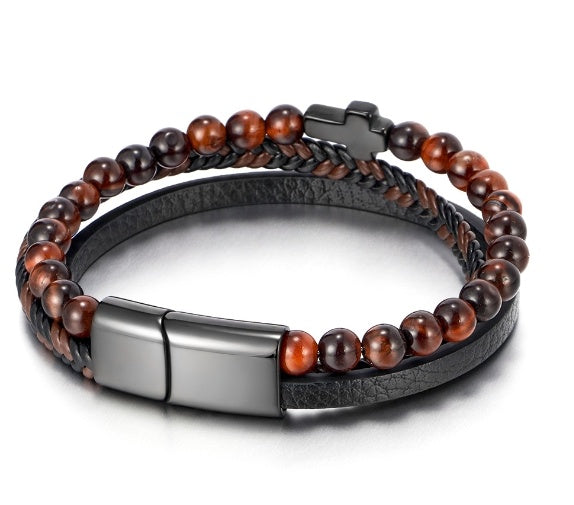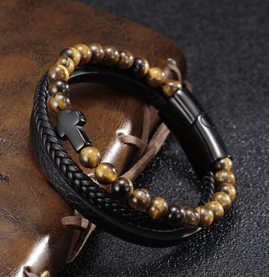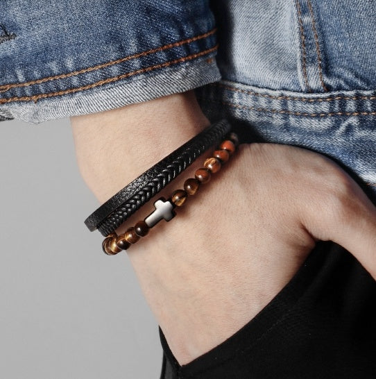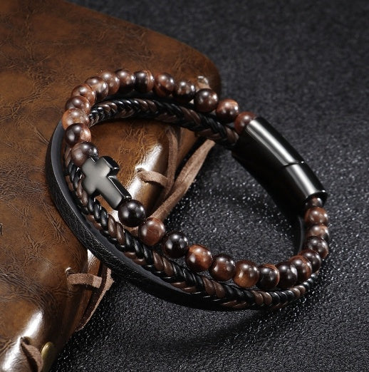 Cross Multi-layer Stainless Steel Men's Bracelet