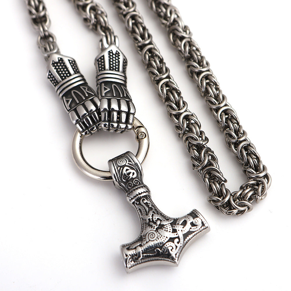 - Stylish Design: Features a striking hammer pendant, available in steel color and golden hammer variations.