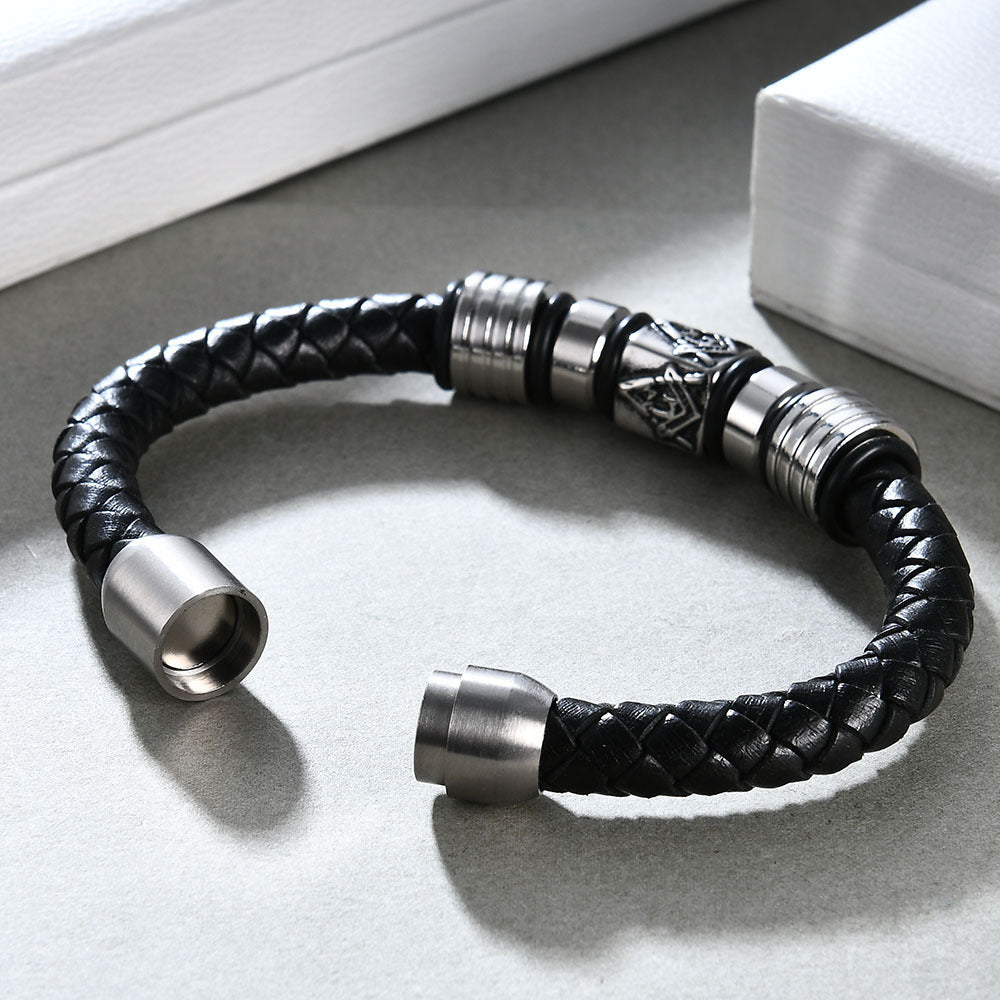 Stainless Steel Men's Religious Totem Leather Bracelet